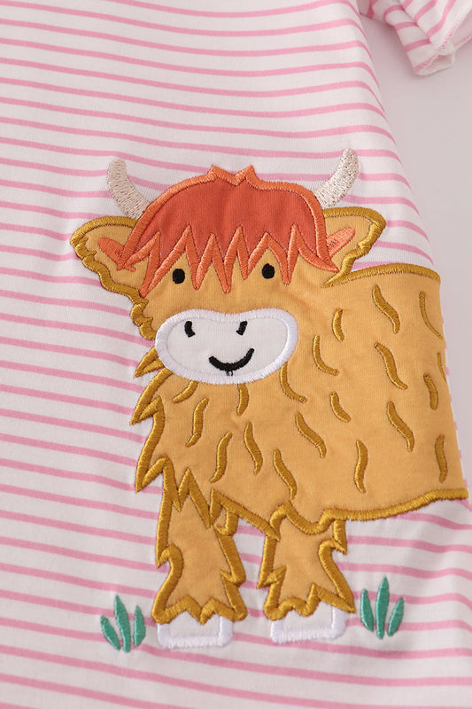 Pink stripe buffalo applique ruffle shorts set